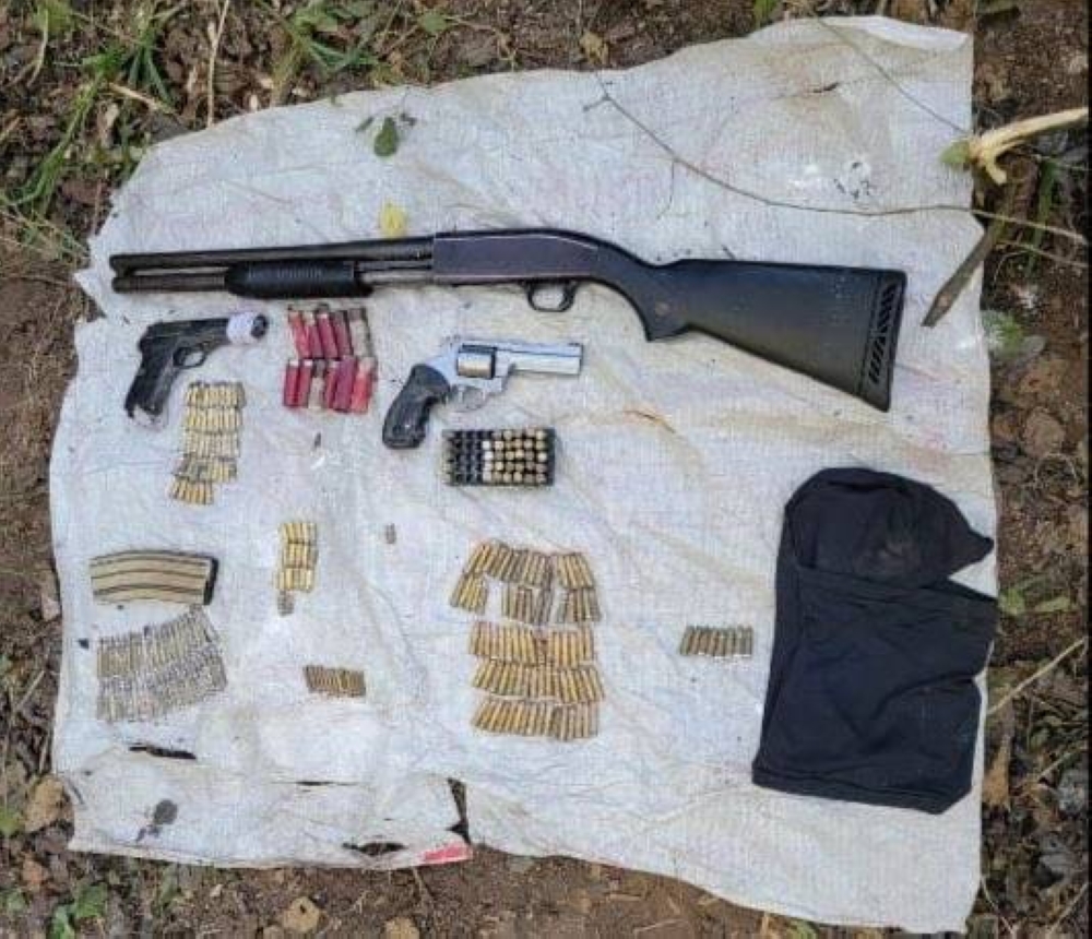 Las armas que fueron encontradas son una escopeta 12, una pistola calibre 32-20, además, un revolver calibre 357 Magnum, también un cargador para fusil M-16, un gorro pasamontañas y 245 cartuchos de diferentes calibres, afirmó el titular de Defensa.