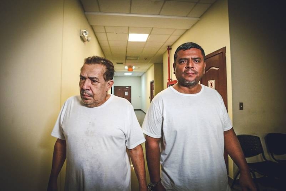 El presidente de la Unión de Empresas Sipago-Sitramss, Miguel Ángel Díaz Castaneda y el exdirector de Tránsito, Edwin Ernesto Flores Sánchez, dos de los procesados.