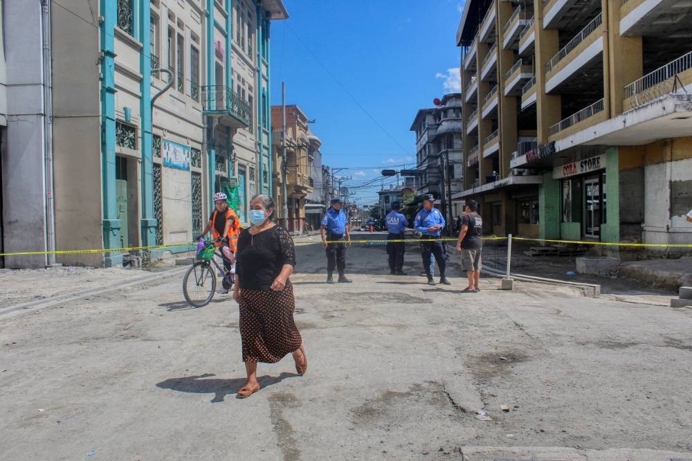 “No podemos dejar que la gente está pasando porque aquí (sobre la 1 calle Oriente) en la tarde entran los tractores, la maquinaria que ayudan a cortar, a mover escombros o cortar y entonces cualquier cosa que le pueda caer a las personas, es lo que debemos evitar”, afirmó Carlos Cruz, quien trabajaba en el desmontaje de los comercios informales.