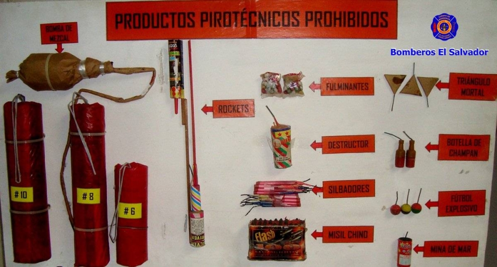 Bomberos de El Salvador tiene un listado de 11 tipo de productos pirotécnicos, cuya venta está prohibida, para evitar tragedias.