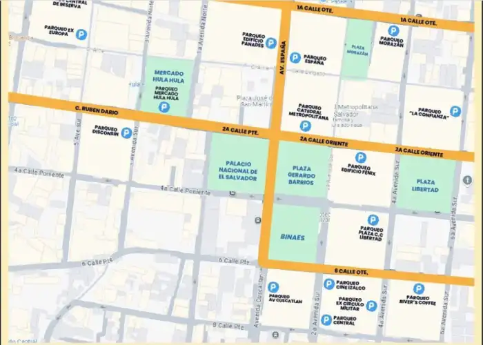 - Parqueo Central: Ubicado sobre la 2ª avenida Sur