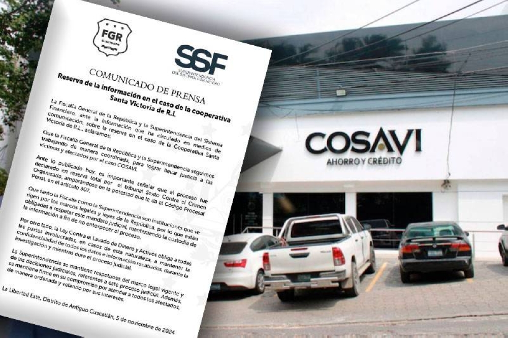 La Fiscalía General de la República (FGR) y la Superintendencia del Sistema Financiero (SSF) manifestaron que la reserva total de información sobre el caso ligado a la Asociación Cooperativa y Crédito Santa Victoria, de Responsabilidad Limitada" (COSAVI, de R.L.) fue debido a una orden emitida por el Tribunal Sexto Contra el Crimen Organizado.