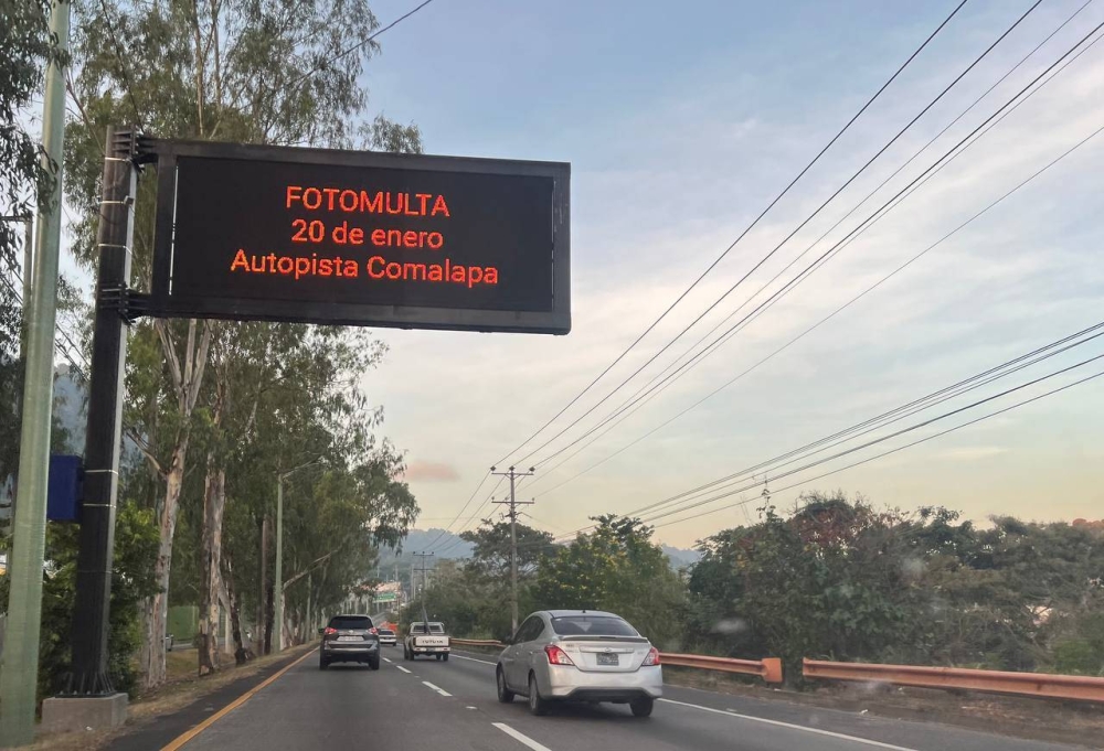 "El día 20 de enero, a partir de las cero horas, vamos a comenzar con el proyecto de fotomulta en la autopista a Comalapa. La velocidad máxima que va a tener la autopista a Comalapa pues va a ser 110 kilómetros por hora y para los vehículos de carga va ser hasta 80 kilómetros por hora", reveló el ministro durante una conferencia de prensa, este lunes.