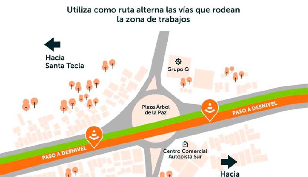 La circulación en el sentido a San Salvador en el paso a desnivel del Árbol de la Paz será restringida a partir de este miércoles, informó el Fovial.