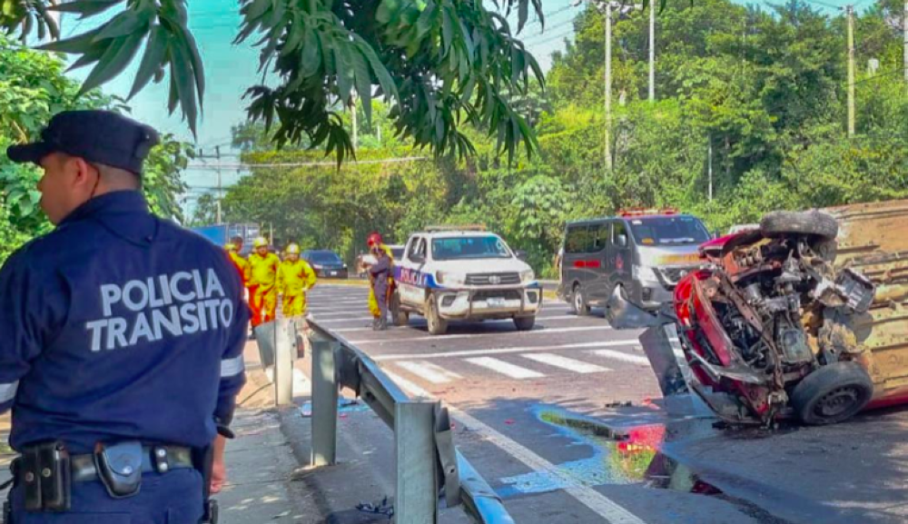 El accidente ocurrió sobre el km 31 ½ de la carretera Panamericana, en el sentido de Sonsonate hacia San Salvador, luego de que el vehículo donde se conducían las personas perdiera el control y volcara.