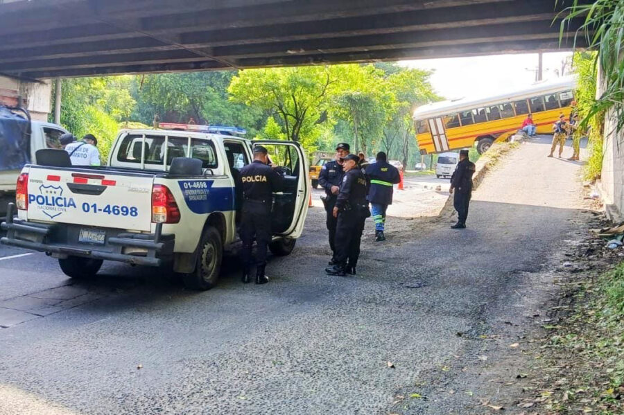 Según la Policía Nacional Civil (PNC), el conductor del bus perdió el control al intentar subir por la calle que conecta con el kilómetro 21 de la carretera Panamericana.