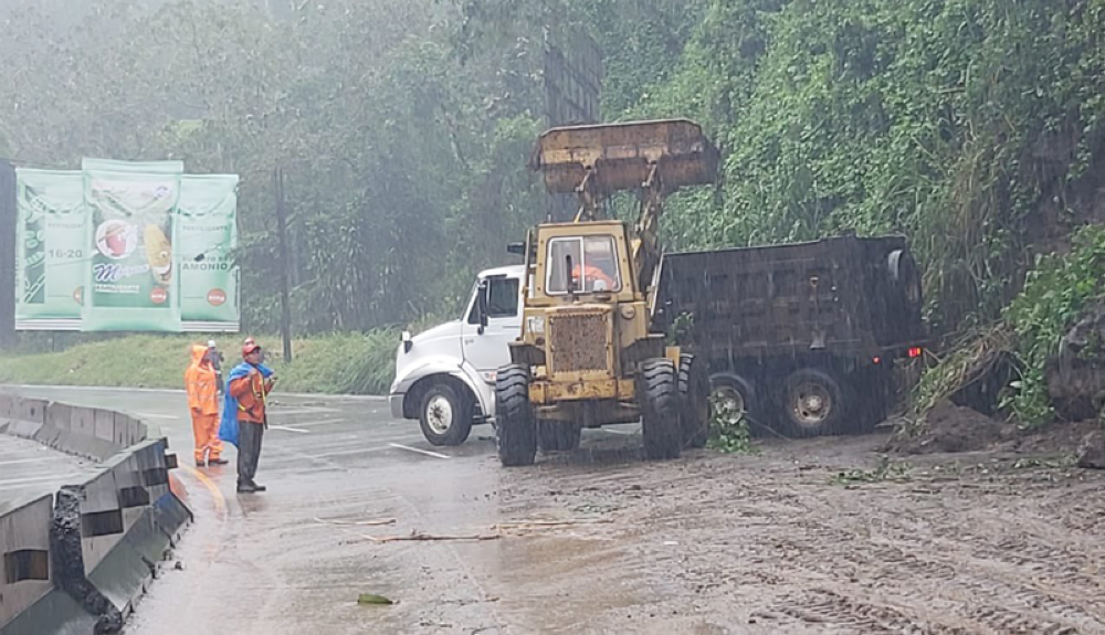 La humedad en los suelos a causa de las constantes lluvias de la tormenta Julia provocó este lunes un nuevo derrumbe en el kilómetro 16 de la carretera Los Chorros, sentido hacia San Salvador, el que durante la tarde fue desalojado y habilitado.