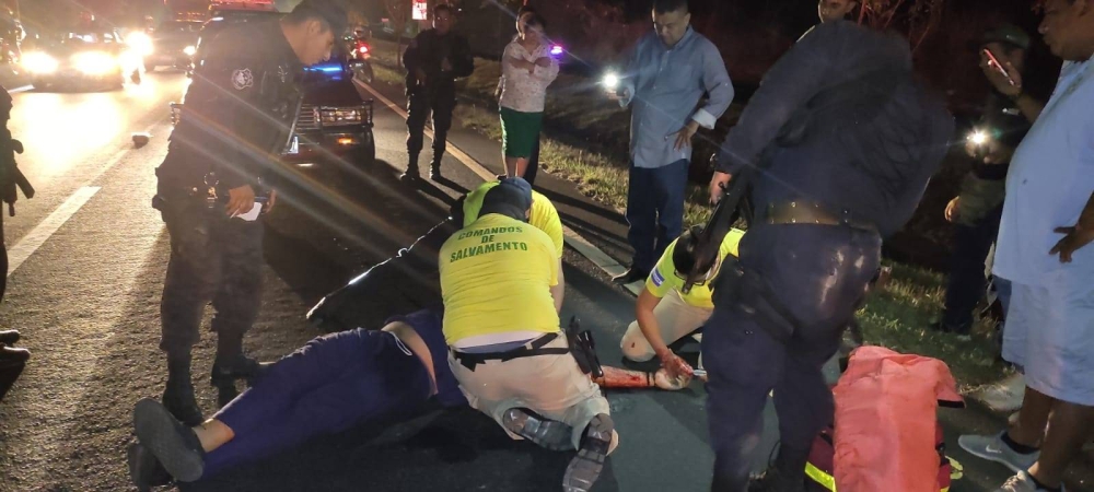 Comandos de Salvamento recibió una alerta de un accidente de tránsito, a eso de las 8:00 de la noche, y que había un hombre, supuestamente atropellado en el lugar, sin embargo, al llegar los socorristas encontraron heridas de arma de fuego en el brazo y abdomen de la víctima, que yacía muerto.