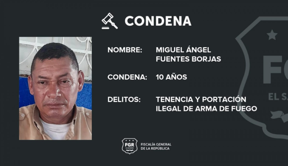 “El 8 de abril del año 2022, agentes policiales llegaron un centro religioso ubicado sobre la 33a. Av. Norte en esta capital, tras recibir una denuncia ciudadana y Fuentes Borjas fue detenido en el interior del parqueo de ese lugar en estado de ebriedad y portaba un arma de fuego sin la documentación que amparara su legalidad”, explicó la FGR.