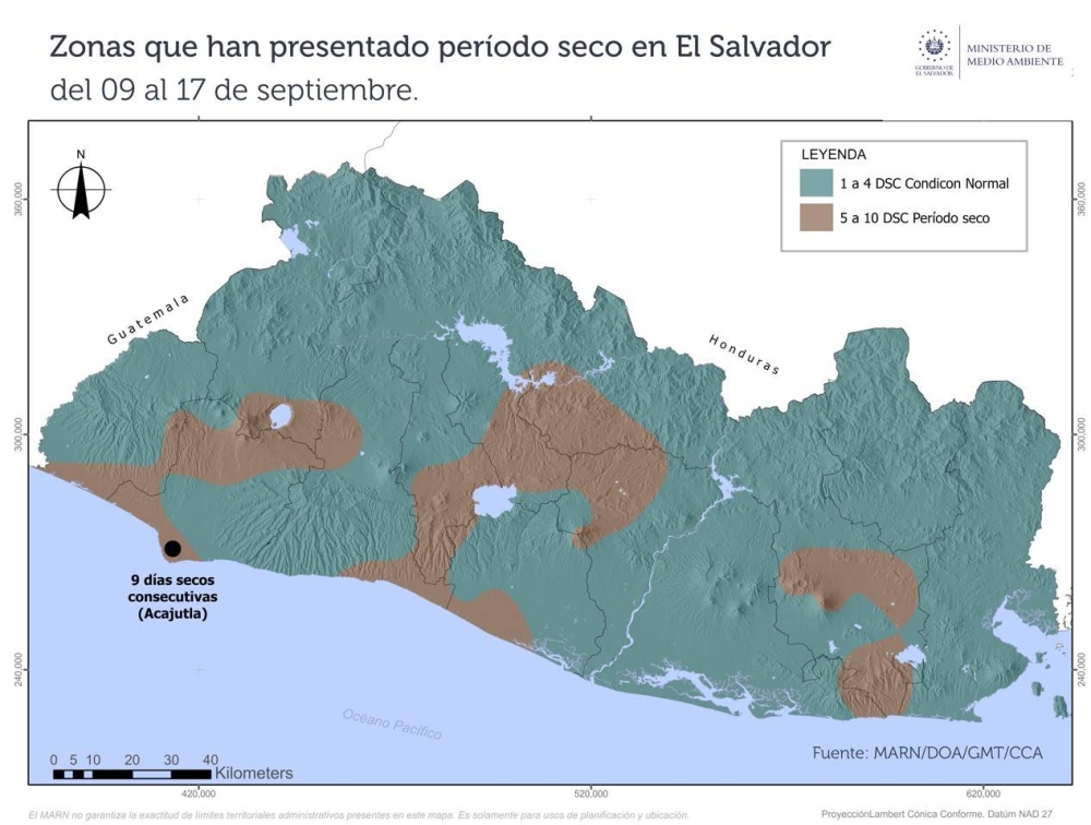 Un informe especial del Ministerio de Medio Ambiente y Recursos Naturales (Marn) indicó que hubo un periodo de disminución de lluvias entre el 9 y 17 de septiembre, de hasta nueve días secos consecutivos, especialmente en Acajutla, Sonsonate.