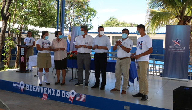 De esa manera, el centro educativo se convierte en la sede principal de un grupo de 9 centros de estudios, beneficiando a más de 542 estudiantes, quienes recibirán una mejor educación con infraestructura de calidad. El apoyo al sistema integrado incluye la provisión de equipo, entre ellos 64 computadoras, 41 tablets y 15 lectores electrónicos", dijo Fomilenio en un comunicado.El recinto fue construido con fondos otorgados por Estados Unidos, a través de la Corporación Reto del Milenio (MCC, por sus siglas en inglés) y su brazo ejecutor en el país, Fomilenio II. La inversión fue de $1.8 millones.