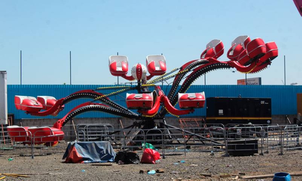 El vértigo, la montaña rusa, el gusanito, los carros chocones, el helicóptero, el anillo de fuego, las tazas, el tornado, el carrusel, el pulpo, y el disco son algunos de las estructuras de ruedas que se están armando en el predio de la feria.