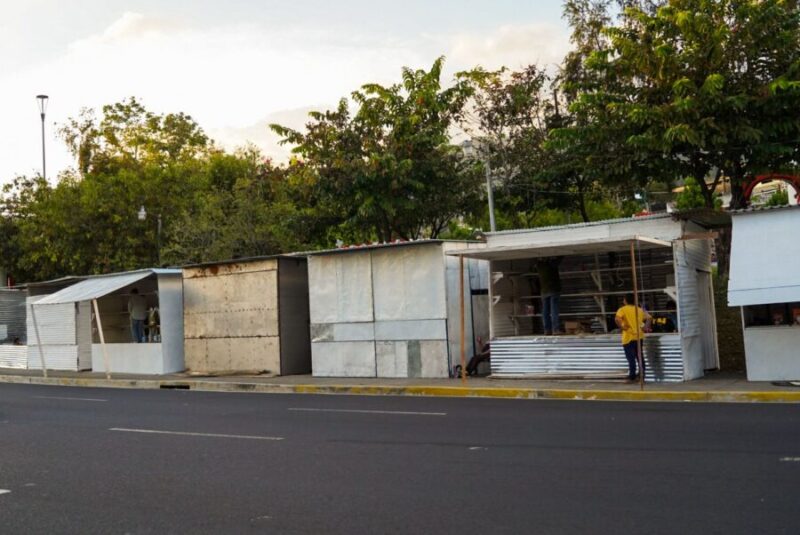 Los puestos de venta están siendo instalados por los comerciantes que obtuvieron los permisos correspondientes con el Cuerpo de Bomberos y la alcaldía de San Salvador Centro en el marco de la aplicación del Plan Pólvora 2025.