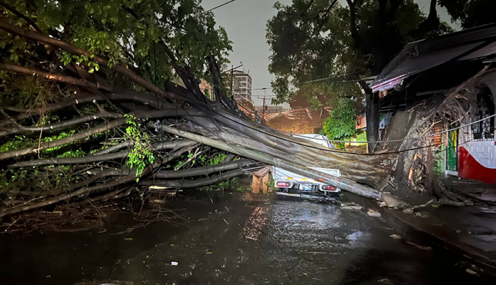 Las fuertes lluvias provocaron la caída de árboles y postes del tendido eléctrico en la zona del Hospital Rosales, San Salvador.