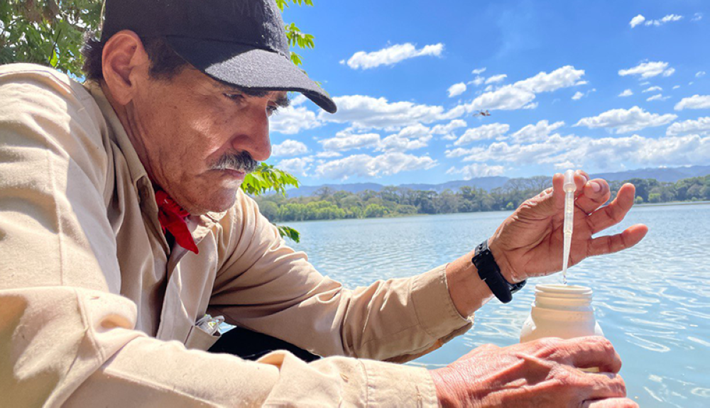 Realizamos el monitoreo hidrogeoquímico en la laguna de Chanmico, en el departamento de La Libertad, para verificar las anomalías en la coloración y el aparecimiento de peces muertos.