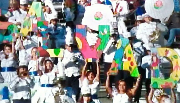 "La banda El Salvador se formó para alejar a los jóvenes de la calle y de la violencia, que causaba miedo, daño y hasta muerte en las comunidades de ese país. El Salvador, el pulgarcito de América", describieron los presentadores, mientras los jóvenes le dieron voz a la canción "Mi País", de Los Hermanos Flores.