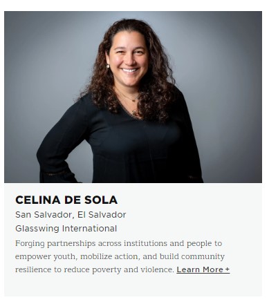La Fundación Obama publica un "Face to Face with the fellows" (Cara a cara con becarios), en él destaca a la salvadoreña Celina de Sola, cofundadora de Glasswing, organización que reúne a gobiernos, empresas y comunidades para romper el ciclo de pobreza y violencia en El Salvador mediante el aprovechamiento de los activos comunitarios existentes para crear un cambio de base.