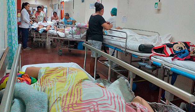 Al igual que Alfaro, ayer había otros pacientes esperando una camilla para pasar al área de ingreso. Personas que hacen limpieza comentaban que “en los días más llenos de pacientes uno ni cabe”, mientras pasaban la escoba por el piso rojo donde más de alguno se había sentado o acostado.