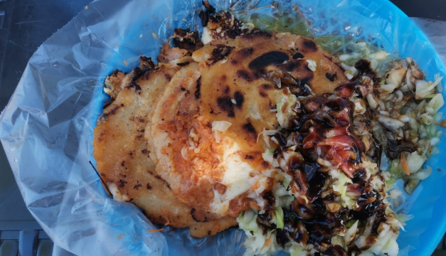 No es extraño encontrar una pupuseria en cada cuadra en la ciudad, donde se comen con un curtido muy especial: una preparación de repollo con zanahoria, mayonesa y jalapeño.