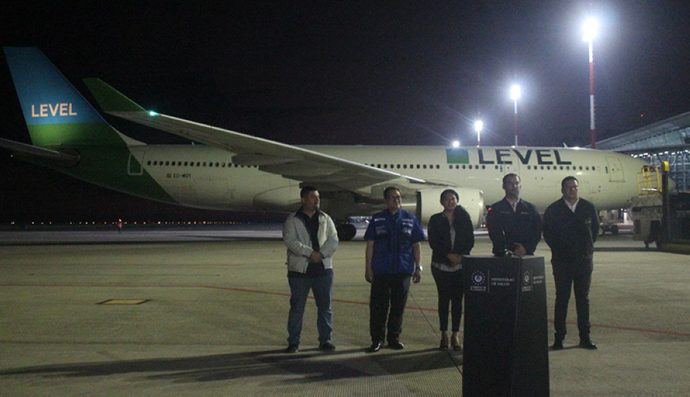 Autoridades del Ministerio de Salud (Minsal) recibieron, la noche de este lunes, un vuelo internacional en el Aeropuerto San Óscar Romero en el que se transportaba el primer lote de 1,400 vacunas contra la viruela del mono.