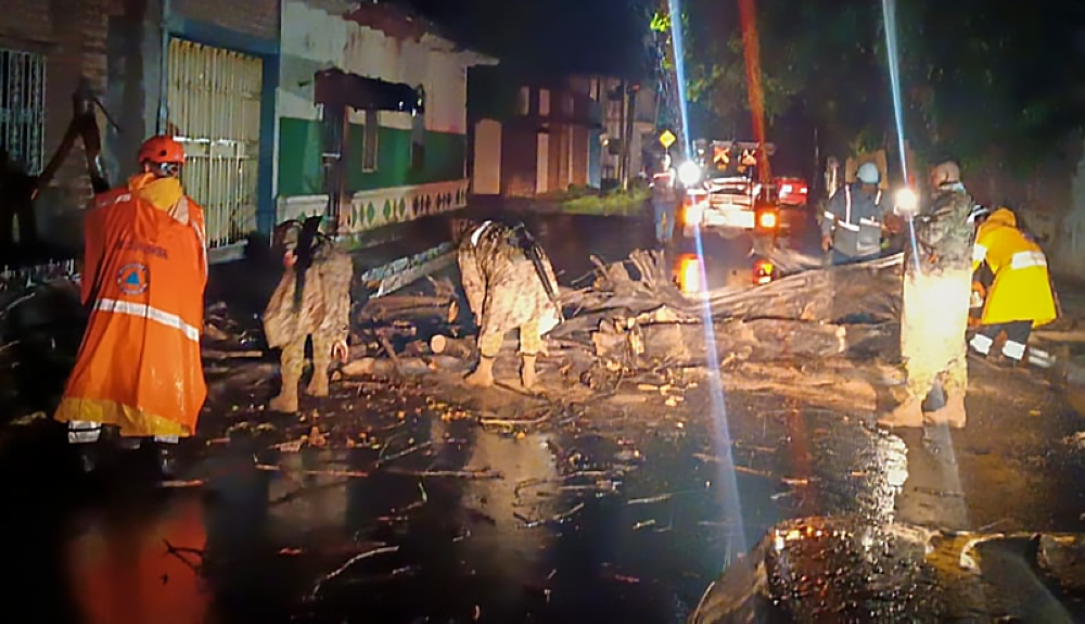 Diferentes instituciones del Gobierno coordinadas por Protección Civil atendieron durante la madrugada de este domingo, diferentes emergencia en el centro de San Miguel donde las lluvias provocaron la caída de varios árboles y la obstrucción de carreteras.