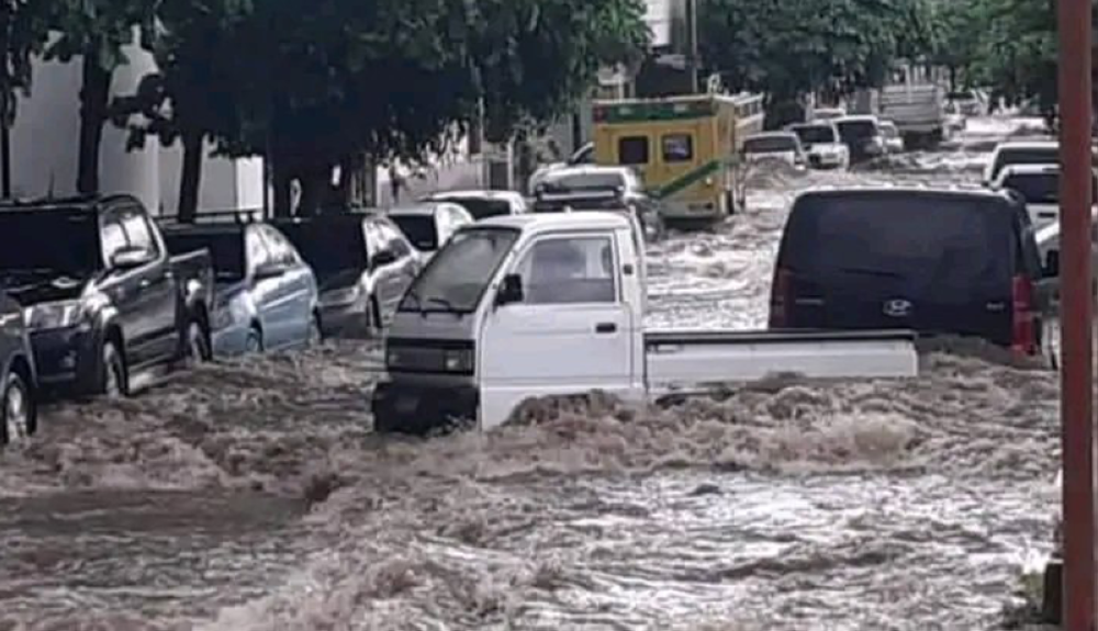El redondel La Ceiba en la urbe santaneca se inundó literalmente sumergiendo los vehículos a un costado, pero este no fue el único lugar que reportó emergencias debido a las severas corrientes.