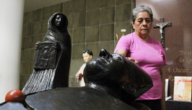 Cuando fuimos a Aguilares, después de la muerte de Rutilio Grande, los militares tomaron la parroquia y la dejaron hecha nada. Monseñor invitó a las comunidades al desagravio, la gente de esa zona tenía miedo, monseñor dio un recorrido por el pueblo con el santísimo, él atrás y el pueblo adelante. Cuando pasamos por la casa de la Guardia Nacional, los guardias pusieron los fusiles y pensamos que iban a disparar, pero monseñor levantó la custodia (hostia) y dijo “Sigan” con mucha seguridad y los guardias se fueron haciendo para atrás.