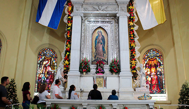 Velas, rosas de diferentes colores y artesanías de la virgen de Guadalupe, rodean la basílica de Antiguo Cuscatlán, que es visitada por pequeños y grandes para celebrar la aparición de la “Morenita” en 1531, ante Juan Diego.