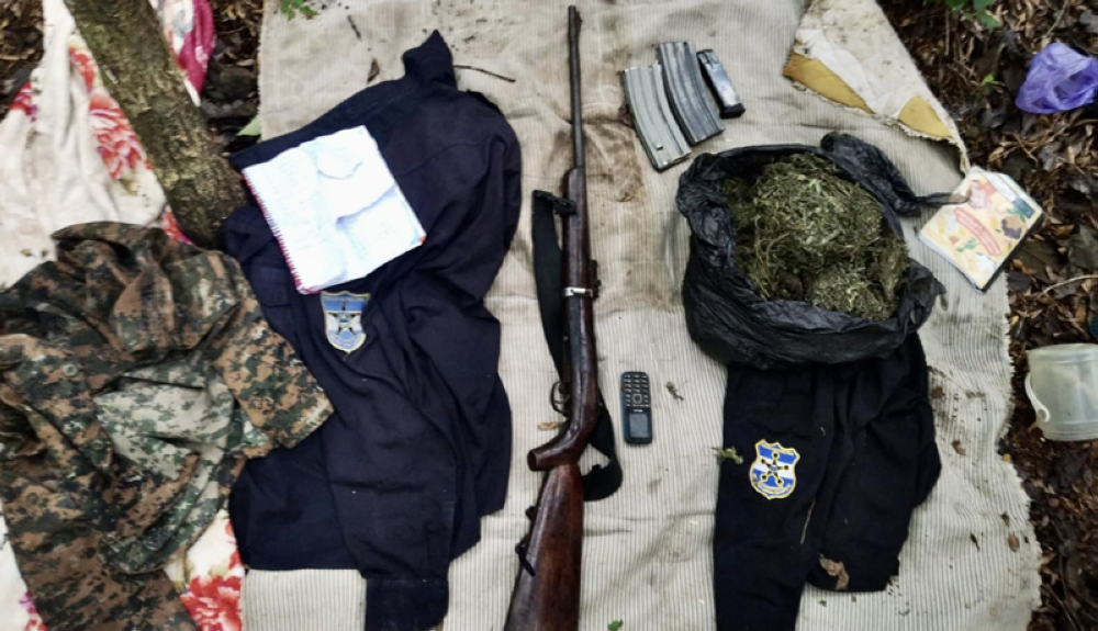 El Ministerio de la Defensa detalló que durante el procedimiento los militares decomisaron un fusil calibre 22; una pistola con su cargador; dos cargadores de M-16 con 28 cartuchos; 15 cartuchos calibre 45; un cargador de pistola 9 milímetros; prendas de uso policial y militar, también marihuana.