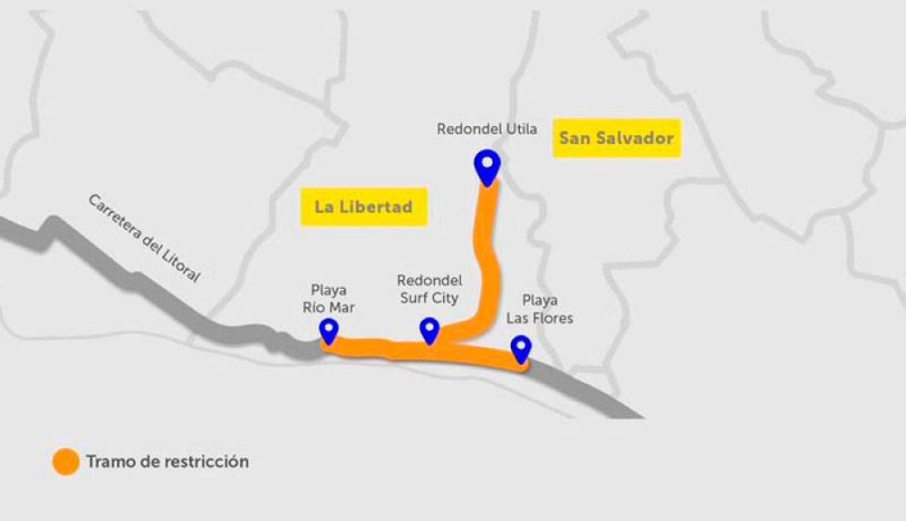 Según el ministro de Obras Públicas, la restricción abarcará dos sectores: el primero en la "carretera al Puerto de La Libertad, desde el redondel Utila pasando por el bypass, camino a Surf City, llegando al redondel Conchalío".