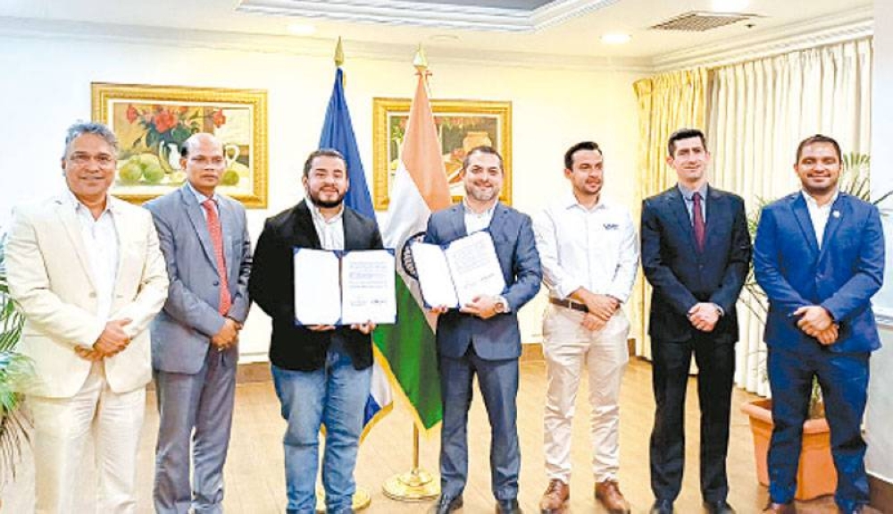 La firma fue realizada en presencia del embajador de India en Guatemala, Manoj Kumar Mohapatra, el cual aseguró que este tipo de convenios promueven la convergencia entre los dos países y, en la misma línea, abre la posibilidad de que más empresas indias contribuyan al desarrollo de la región centroamericana.“El ministro Romeo Rodríguez, de Obras Públicas, y el señor Russell Alexander Luther Rodas de Laxmi Capital firmaron en presencia del embajador Manoj Mohapatra y el viceministro, Nelson Reyes, del Viceministerio de Transporte (VMT), para iniciar un proyecto de metro en El Salvador con apoyo técnico del a India”, señala una publicación de la Embajada de la India concurrente con El Salvador y Honduras.