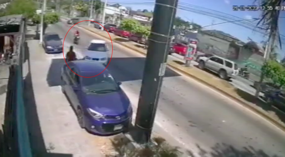Cámara de seguridad capta momento donde motociclista impacta con vehículo que se estaba incorporando al bulevar Constitución, a la altura de La Gloria. pic.twitter.com/tmnLl7s4zr