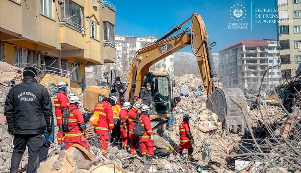 El gobierno de El Salvador envió el pasado miércoles a Turquía un equipo de socorro de 100 personas, entre los que hay 58 soldados especializados en búsqueda y rescate, 42 bomberos y médicos, además de varios perros.