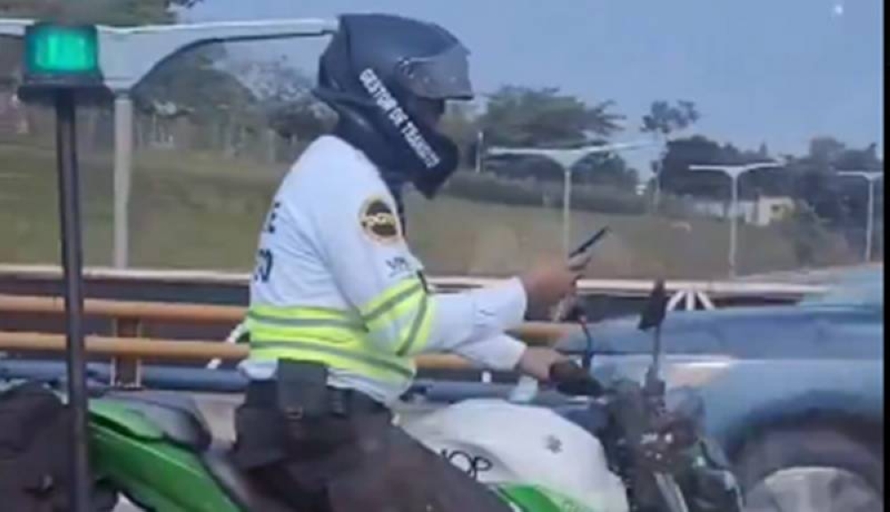 El Viceministerio de Transporte (VMT) multó con una multa de $57.14 a un gestor de tráfico motorizado que fue denunciado en redes sociales conduciendo mientras usaba su teléfono celular.