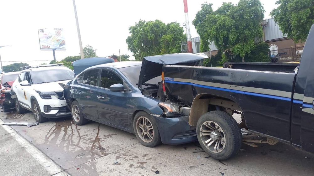 Preliminarmente hay cinco vehículos involucrados, entre ellos carros livianos y una rastra, además hay personas lesionadas, informó la Policía Nacional Civil, sin dar detalles de la cantidad de golpeados.