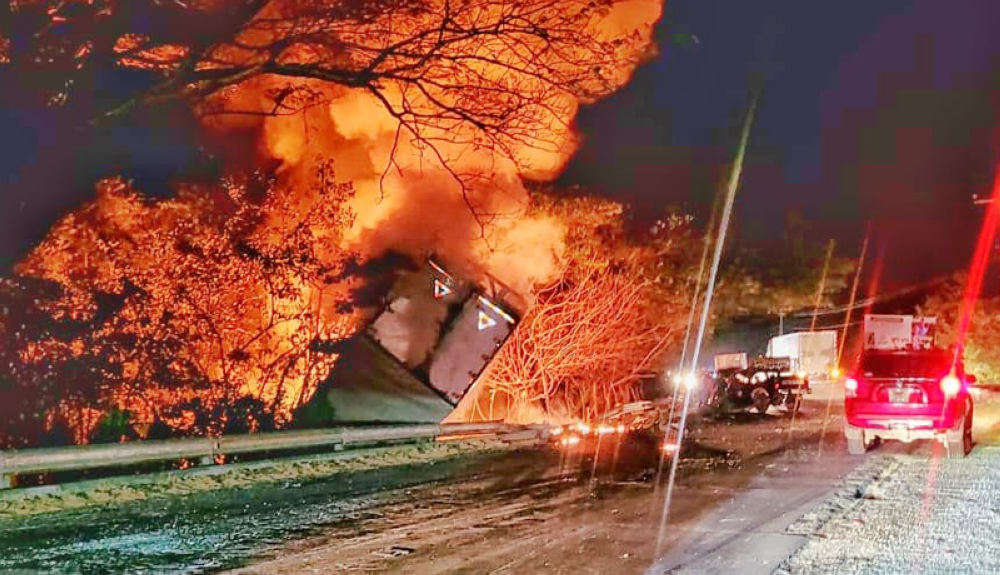 Se confirma 1 fallecido, 2 lesionados y del conductor de la rastra se maneja la hipótesis que no logró salir del incendio. pic.twitter.com/p90ZceqpmY
