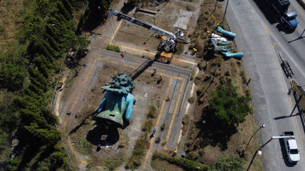 Ayer, el Gobierno salvadoreño empezó, este miércoles, con la demolición del monumento a la Reconciliación, sobre el bulevar Monseñor Romero, luego de más de tres años que el presidente de la República, Nayib Bukele, anunciara que desmantelaría "a la señora azul".