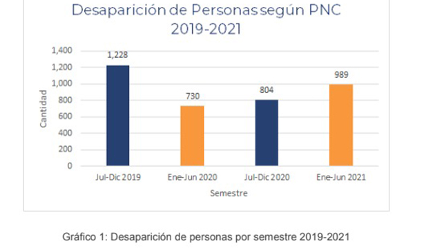 De junio de 2019 a junio de 2021, de un total de 2,448 casos, el 65.26 % fueron "resueltos" pero 1,303 casos todavía están sin resolución.La PNC clasifica la resolución de las desapariciones en función de si la víctima fue encontrada con o sin vida y si la víctima sufrió un delito adicional a la desaparición. Los resueltos no implican capturas según dicha definición.