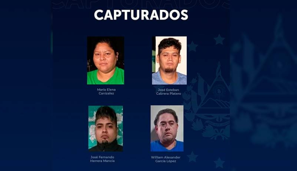 Los sujetos capturados fueron identificados como: María Elena Canizalez, José Esteban Cabrera Platero, José Fernando Herrera Mancía y William Alexander García López.