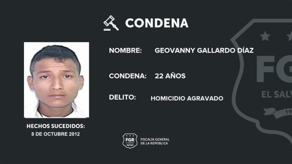 El Tribunal Segundo de Sentencia de Santa Tecla lo condenó en ausencia a 22 años de cárcel a Geovanny Gallardo Díaz, por el delito de homicidio agravado.