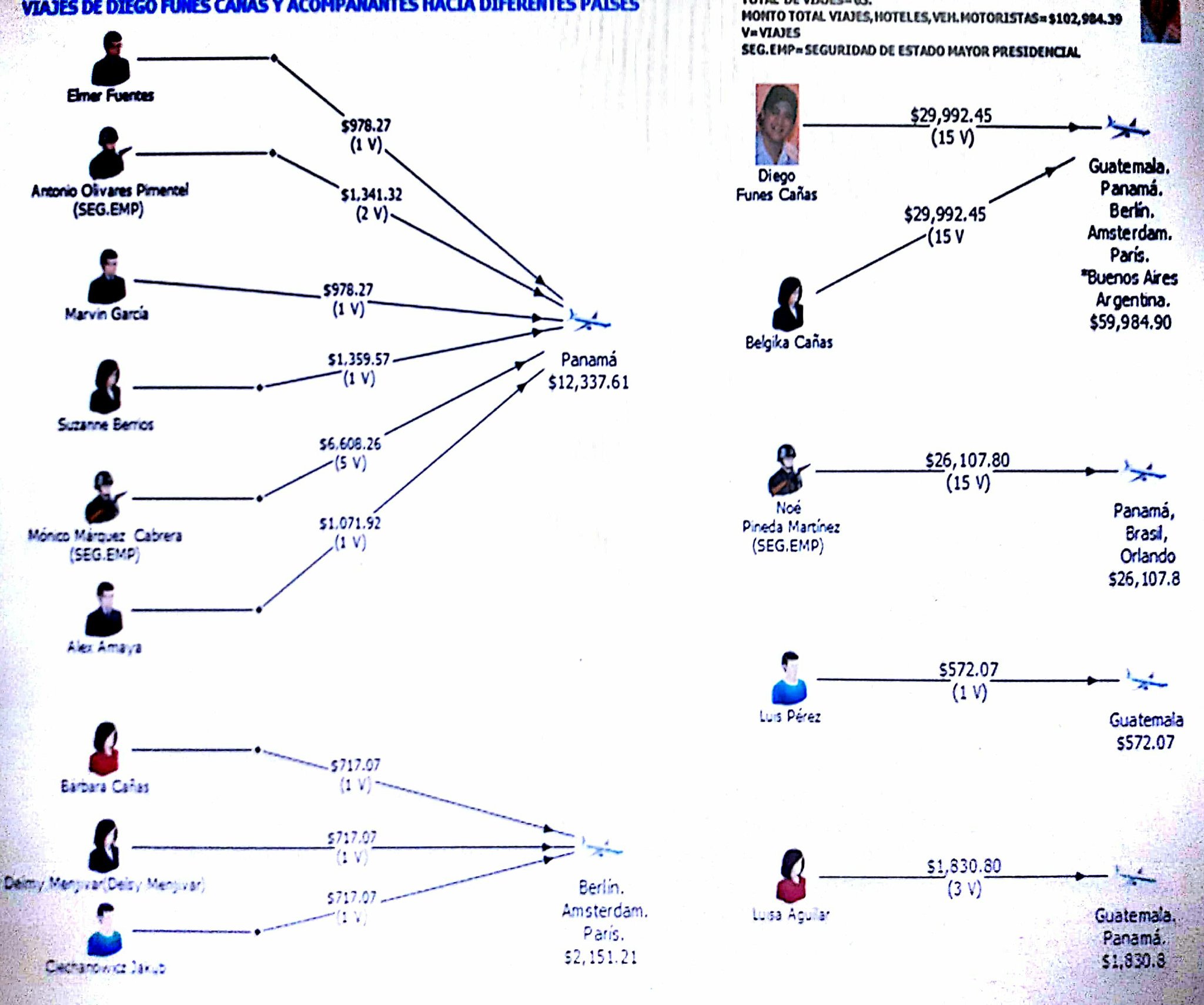 Además de las cirugías, a la actual pareja del expresidente, que está con él en Nicaragua, se le atribuyen pagos de tarjetas de crédito por un monto de $26,349.53; compra de vehículos por $208,800.00; además de otros gastos, como en gastos hospitalarios y en supermercados, agregando viajes de placer, algunos hechos junto con su madre.