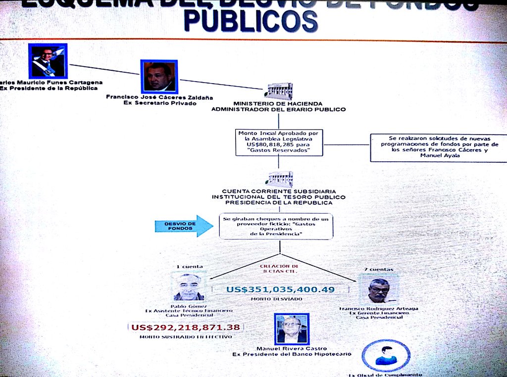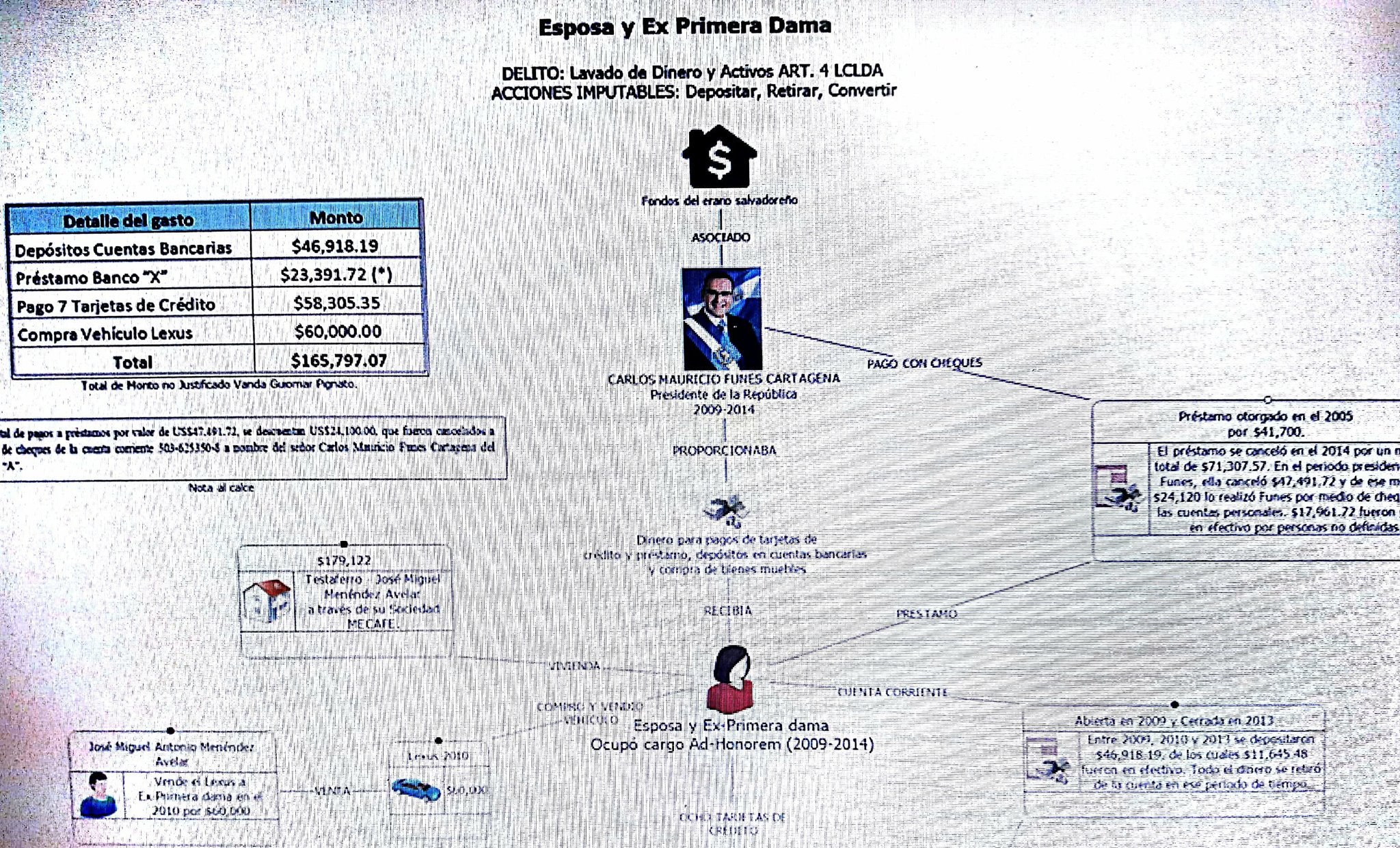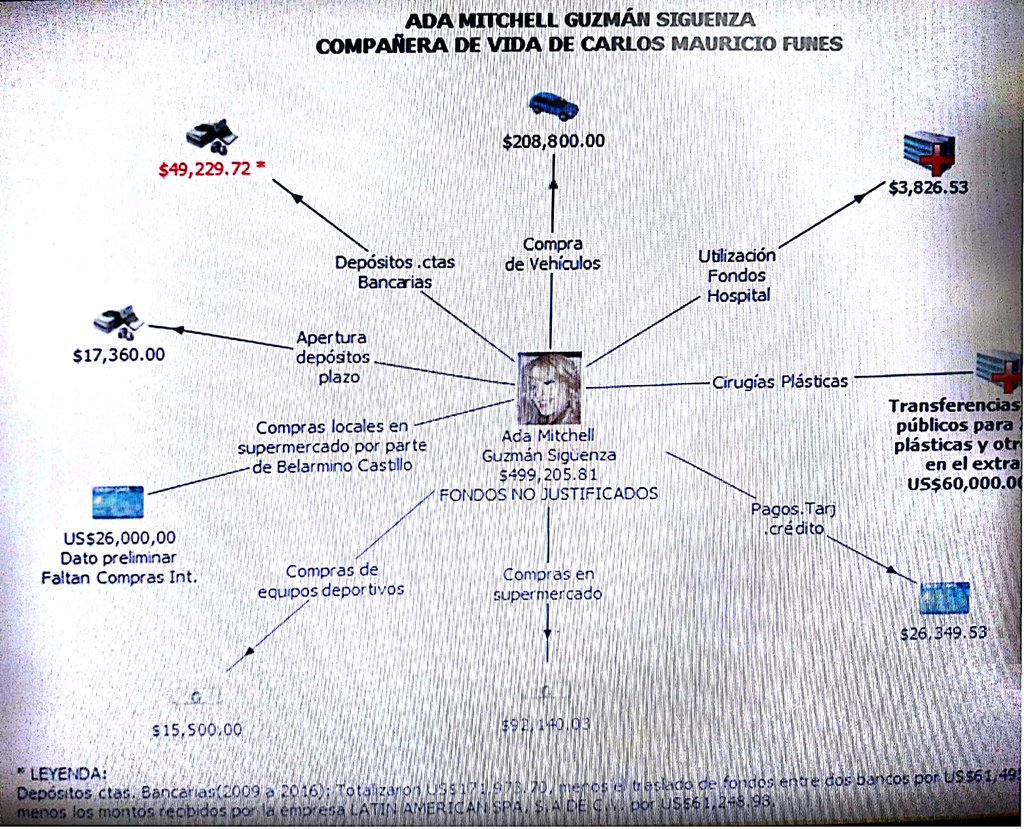 Dentro de los detalles dados en la conferencia de prensa por el fiscal general de la República, Douglas Meléndez; y el jefe de la unidad de Investigación Financiera, Jorge Cortez, se encontró que algunos fondos del Estado fueron transferidos hacia la pareja y exparejas del exmandatario (periodo 2009-2012).