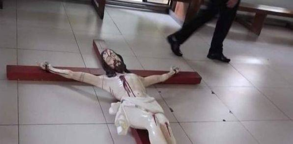 La parroquia El Señor de la Misericordia, de Aguilares, denunció en las últimas horas que, el pasado jueves 5 de septiembre, la cruz del altar, así como la imagen de Cristo Crucificado y el sagrario, fueron atacados por una persona que ingresó a la parroquia.