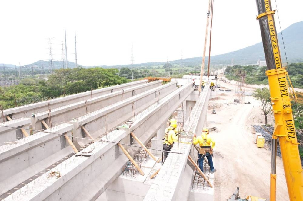 El pasado 22 de mayo, la cartera de Obras Públicas inició con la colocación de las vigas en el paso a desnivel Integración, como parte de los avances en la obra en la vía que conecta con el bulevar Constitución.Posterior a la entrevista, el ministro Rodríguez expuso en una conferencia de prensa que este lunes se trabaja en la colocación de cinco vigas más en el paso a desnivel, sumando con estas 25 colocadas de un total de 110, las cuales mejorará la conectividad entre Apopa y San Salvador.