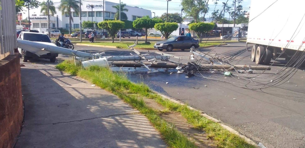 La circulación vehicular en sector aledaño al Centro Comercial Metrosur se encuentra restringida debido a un accidente reportado esta mañana, en el cual una rastra impactó contra un poste de tendido eléctrico.