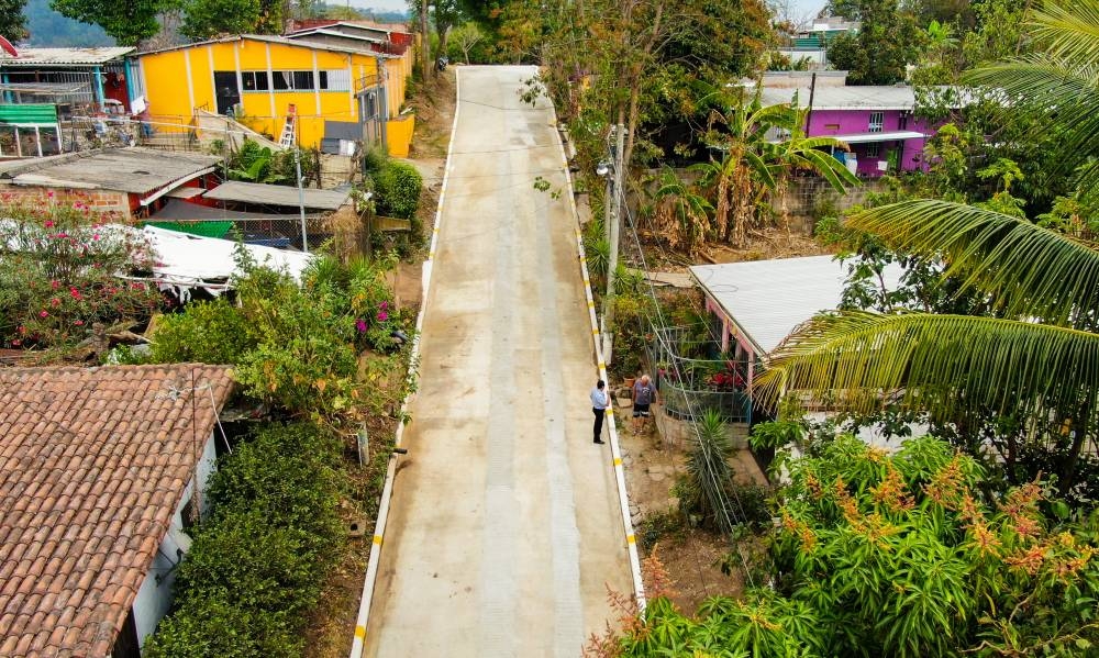 El alcalde de Zaragoza, César Godoy, pavimentó la calle de acceso al pasaje 3 de la comunidad Vista Hermosa 2, en el municipio de Zaragoza, departamento de La Libertad.