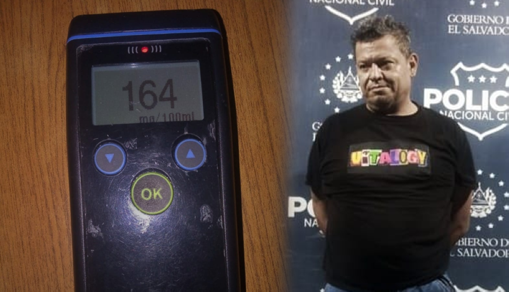 La policía informó que el motorista fue capturado en el reparto Las Margaritas de Soyapango, y posteriormente le realizaron la prueba de alcotest, la cual indicó que manejaba con 164 grados de alcohol en la sangre.