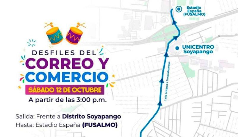 Según publicó la comuna en su cuenta de Facebook, las calles por las que transitará el desfile son: Frente a las oficinas distritales de Soyapango, la 2a calle Oriente, la 6a avenida Norte y la calle antigua a Tonacatepeque hasta llegar al estadio España (Fusalmo).