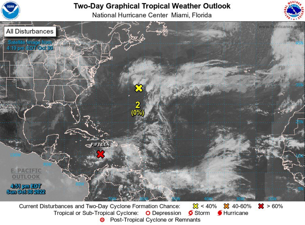 El Centro Nacional de Huracanes (NHC) de Estados Unidos por sus siglas en inglés, informó la tarde de este domingo que la baja presión formada en el Caribe se convirtió en potencial Ciclón Tropical 15 y se dirige rumbo a Centroamérica con influencias de vientos y lluvias.