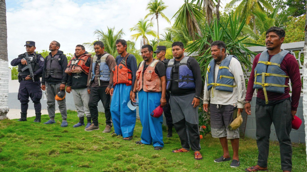 Las autoridades del Gabinete de Seguridad presentaron este viernes a ocho extranjeros, seis mexicanos y dos ecuatorianos, que el pasado 4 de agosto fueron capturados con más de 1,500 kilos de cocaína a 450 millas náuticas al suroeste de la Bocana El Cordoncillo, en el Estero de Jaltepeque, en La Paz.